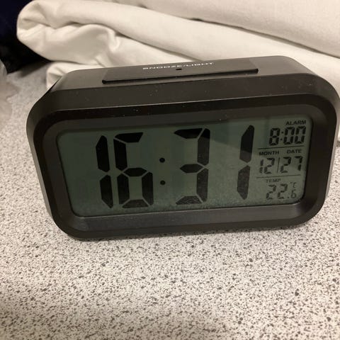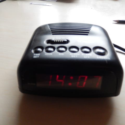 Sort digitalt vækkeur til batteri