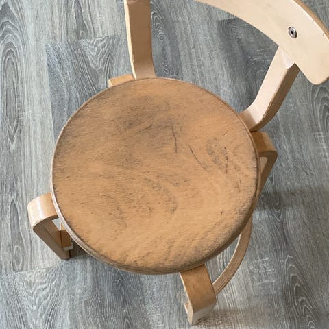 IKEA Børneskammel i træ, designet til børn. Skamlen har et enkelt og robust design med fire ben og en rundet siddeplade. Fremstillet i naturligt træ, velegnet til børneværelset eller som ekstra siddeplads.