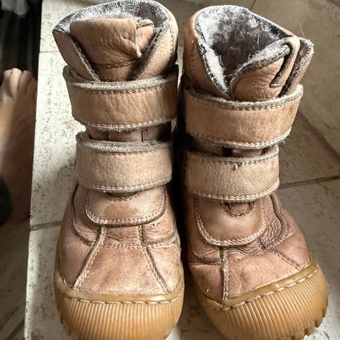 Bisgaard børnestøvler til pige i størrelse 31. Støvlerne har en robust sål og justerbare velcrolukninger for nem tilpasning. Farven er en kombination af nuancer i brunt og rosa. Velegnet til udendørs brug i koldt vejr.