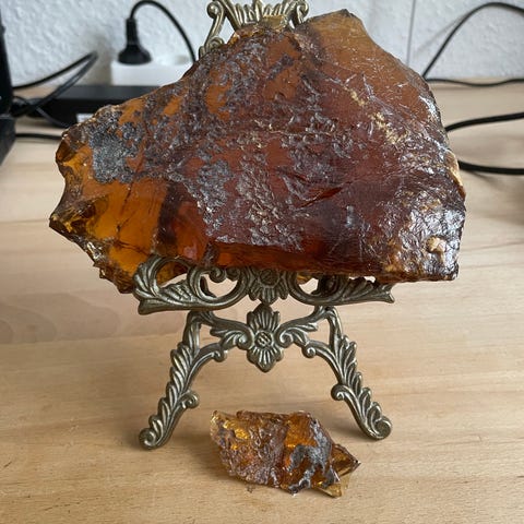 Ravstykket befinder sig i æske med forstørrelsesglas som er 25 x 25 x 30 mm stort