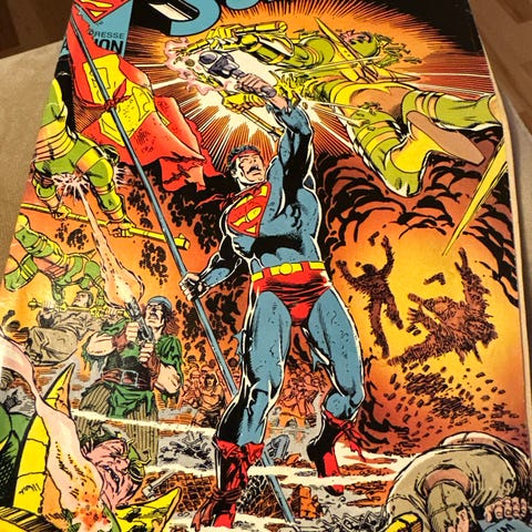 DC Comics Superman tegneserie med farverigt omslag og illustrationer. Indeholder historier med Superman og andre karakterer fra DC-universet. Velegnet til samlere og fans af tegneserier.