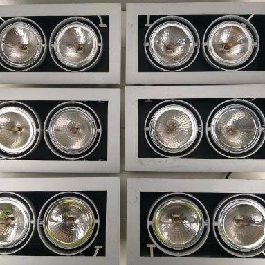 Spot, Ukendt, Hvid retro/vintage skinne med 2 spots, alt i plast men skinnen har metal indeni, ca. fra 1980'erne. Pære følger med. Det er en Osram decostar 35 S.