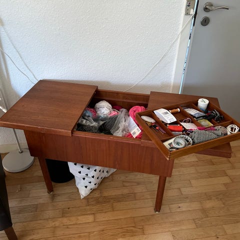 Indeholder skuffe med små rum samt et stort - hylden er flytbare så den gå til højre og venstre.
