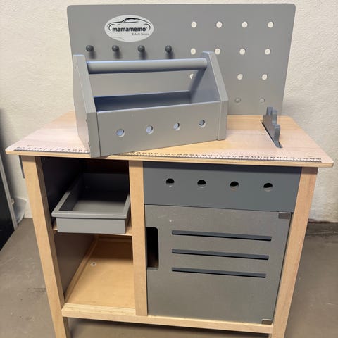 Mamamemo værktøjsbænk med tilhørende værktøj.