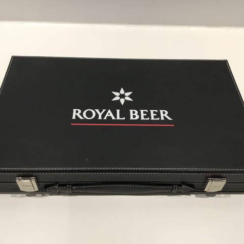 med tilbehør inklusive terninger,bæger og spillebrikker. Spillet er i en bærbar kuffert med håndtag for nem transport.