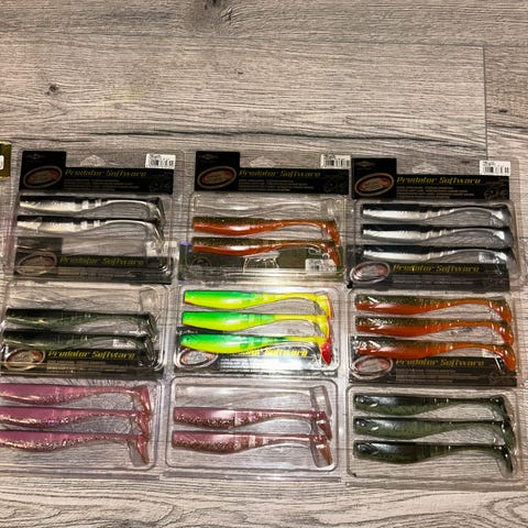 Enkelte har været rigget med jighoved, men de fleste har blot været i grejkassen. Nogle er gummiet blevet bøjet lidt, så halen er i en forkert vinkel.