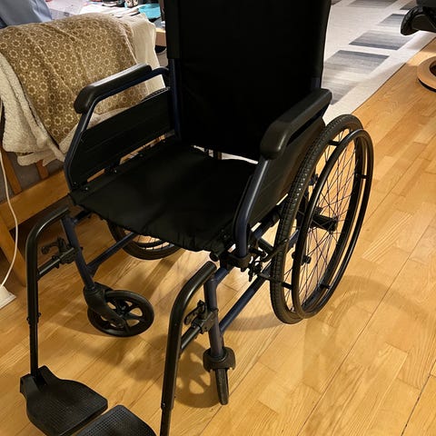 Standard kørestol med sort sæde og ryg