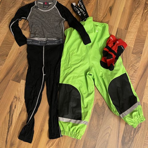 Sæt med 2 ski undertrøjer (termo), et par termobukser både st 110-116 og et par skisokker (st 23-26).