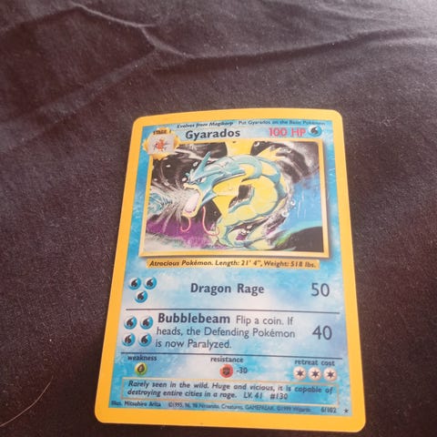 Sjældent Gyrados kort sælges. Som det kan ses har den synlig skade bagpå men en fin forside