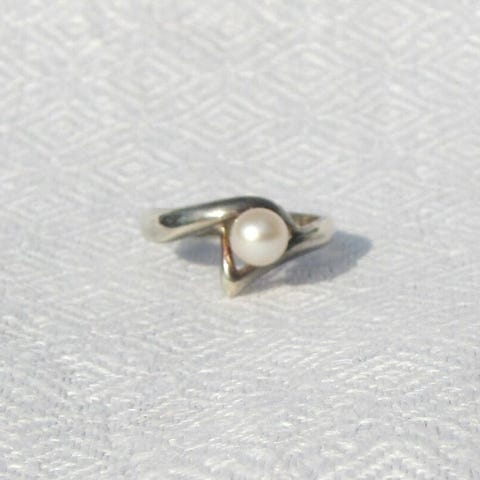Perle ring som har været brugt få gange siden 1995. sølv er irret og skal renses. Lille størrelse. Byd gerne.