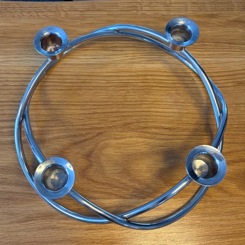 Georg Jensen lysestage i metal med plads til fire lys. Lysestagen har et enkelt og moderne design.