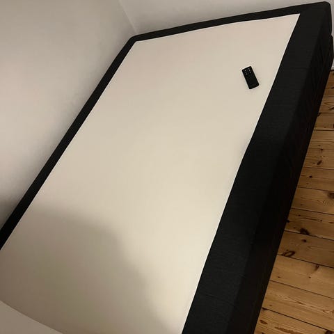 Mørkegrå elevationsseng, der er justerbar både ved hovedet og benene.