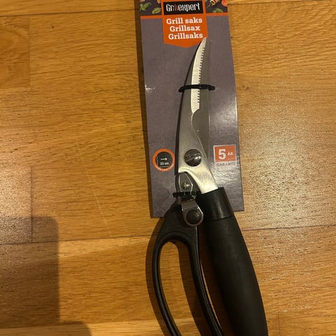 Fiskars køkkensaks med sort og gråt håndtag. Designet til brug i køkkenet, egnet til klipning af madvarer og emballage. Brugt to gange!