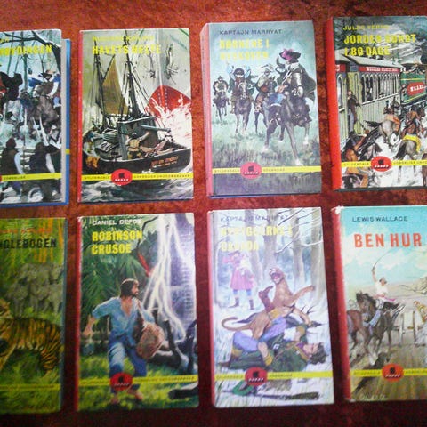 9 børne klassikere, Jules Verne, Kaptajn Marryat, Rudyard Kipling m.fl, 9 forskellige børneklassikere. Hardback. Gyldendals Udødelige Ungdomsbøger. ca.1968-1976. Alle i læste/brugte eksemplar men ok stand uden skader. 30 kt/stk. Alle 9 stk for 250 kr