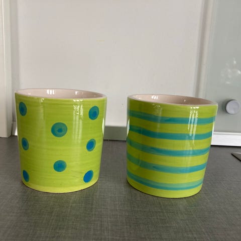 Krus, højde 10 cm. Ubrugte. 2 stk,