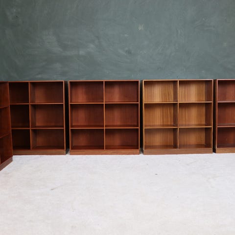 4 teak reoler og 2 sokler
