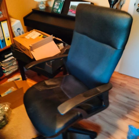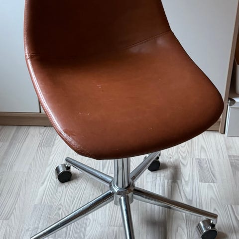 Kontorstol med brunt læder og krom base