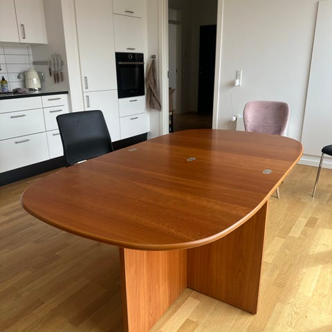 Bordet er stabilt og i pæn brugt stand med almindelige brugsspor. Intet der påvirker funktionaliteten. Kan slås sammen og blive halv størrelse