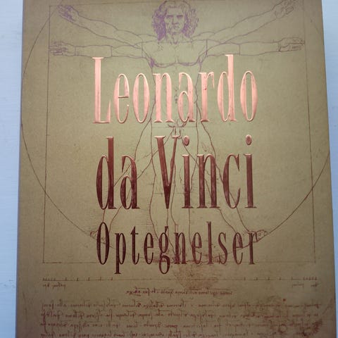 Leonardo da Vinci Optegnelser bog med samling af optegnelser, skitser og tegninger af kunstneren og opfinderen Leonardo da Vinci. Indeholder illustrationer af forskellige tekniske og kunstneriske emner fra renæssancen. Teksten er på dansk.