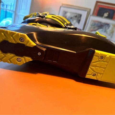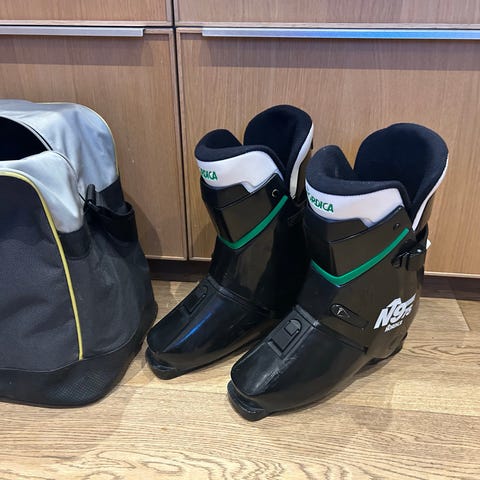 Fine skistøvler købt brugt - passede ikke til mine fødder. Bruger størrelse 43,5 i sko. Derfor passer støvlerne til skostørrelse 42,5 eller 43.