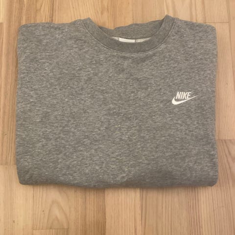 Nike M sweatshirt i grå farve lavet af bomuld til herre. Produktet har lynlåslommer og en rund halsudskæring. Designet er enkelt med et lille logo på brystet.