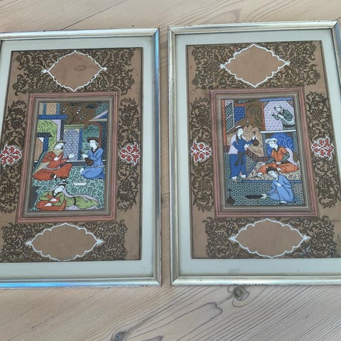 Akvarel, 2 fine billeder malet på stof