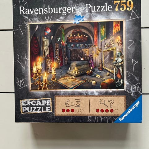 Ravensburger Escape Puzzle med 759 brikker. Puslespillet har et detaljeret motiv og er designet til voksne og børn med interesse for puslespil og escape rooms. Alm puslespil.