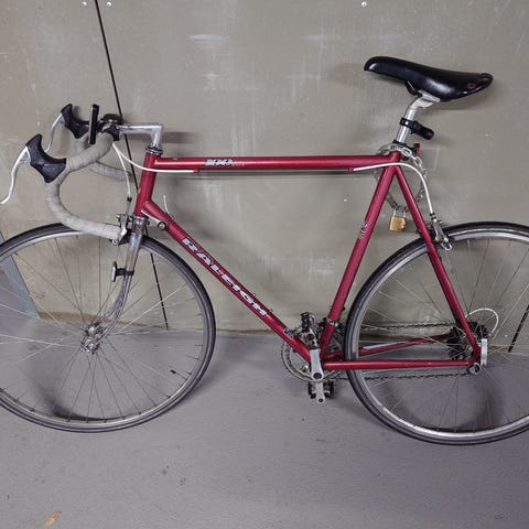 Jeg købte denne cykel for nogle måneder siden, men sælger den nu, da jeg ikke er helt til udvendige gear. Den har stået inde i et sommerhus i Sverige og er kun blevet brugt få gange, standen er derfor rigtig god. Jeg har skiftet bremseklodser og sat en ny sadel på, men jeg har fortsat den originale sadel. Rigtig fin cykel, hvor alle dele fortsat er de originale. Vil nok passe bedst til nogen på 175-190 cm.