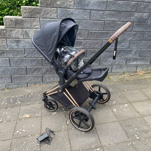 E-priam barnevogn – komplet sæt med ekstraudstyr