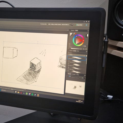 En stor 27-tommer Cintiq, helt perfekt til alt kreativ arbejde på computeren. Den har været et genialt værktøj for mig. Skærmen er af glas, og ikke plastik som mange andre Wacom modeller, og står derfor som så godt som ny.