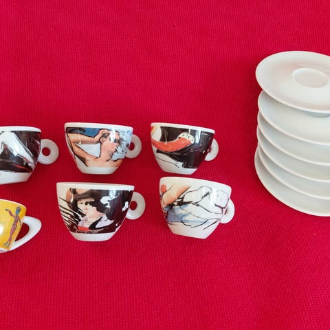 4 super fine Italienske espressokopper med underkopper. Richard Ginori. Meget gamle og sjældne. I super fin stand, ingen skår eller afslag og få brugsspor. Farverne er grøn, mint, lyserød og orangegul. Søde som sæt, men kan også fint mixes i farverne. Meget fine og tynde i porcelænet. Ægte vintage. Sælges kun samlet. Prisen er for alle 4 sæt.