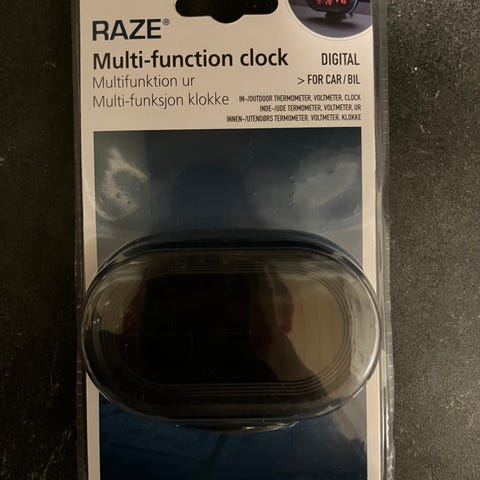 Opel ur med digitalt display, rund form, sort og grå farve. Uret viser tid og dato og har tre knapper til indstilling. Ur og dato er indstillet.