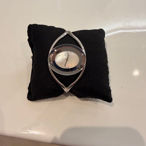 Calvin Klein dameur med metalrem og rund urskive. Uret er designet til kvinder og har et klassisk og enkelt udseende.