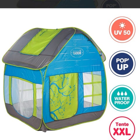Legehus børnetelt i farverig design. Dette telt er ideelt til indendørs leg og kan nemt samles eller adskilles når det ikke bruges. Det farverige mønster gør det til en sjov tilføjelse til ethvert børneværelse.