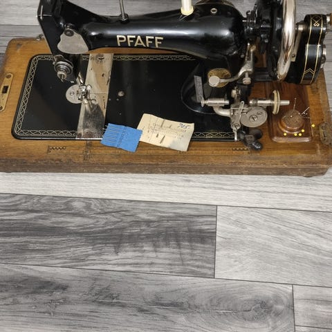 Fin symaskine, kun brugt få gange. Virker fint. Alt som medfølger er på fotos