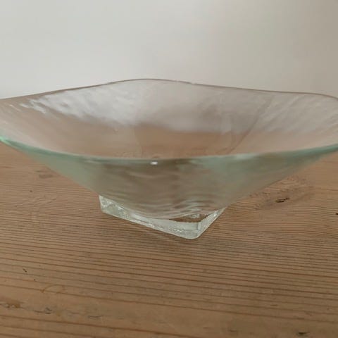 Glas & Klimt glasfad med oval form, dekoreret med turkis og grønne cirkler. Fadet er håndlavet af glas og har et unikt mønster. Velegnet til lys, smykker,chokolade mm. Måler ca 37x14 cm