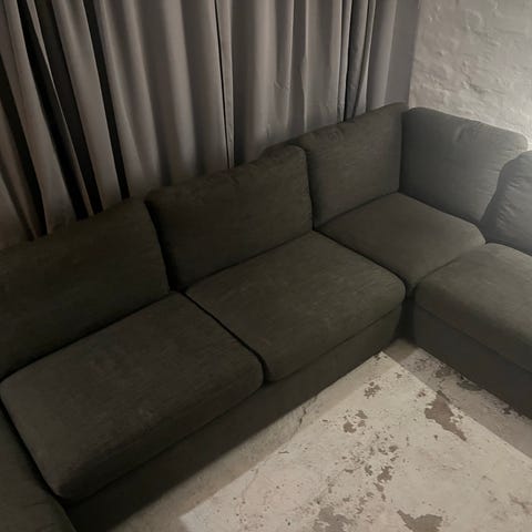 Sofa fra seat and sleep(booa). Nypris ca 12.000kr. Næsten 2 år gammel. Længde ca 3 m, 1 m dyb. Siddehøjde ca 42 cm