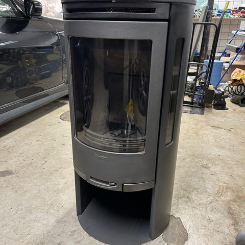 Flot brændeovn med smuk fod i sten. Kom evt med bud