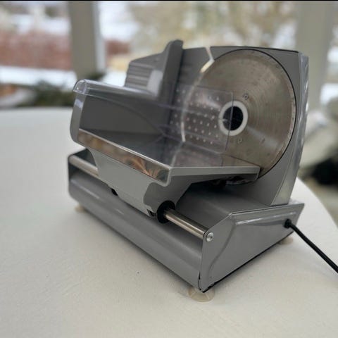 Effektiv pålægsmaskine på 180 watt. Motorkabinet, anslagsplade og grundplade er lavet er metal, som er nemt at gøre rent. Pålægsmaskinen har trinløs indstilling af tykkelsen og går fra 0 til 15 mm. Der medfølger smart glideslæde, fingerbeskyttelse og endestykkeholder som gør det nemt og sikkert at skære skiver. Maskinen har små sugekopfødder, som maskinen kan stå godt fast.