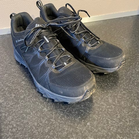 Columbia vandresko i størrelse 43, sort farve. Designet til vandring med robust sål og åndbart materiale.