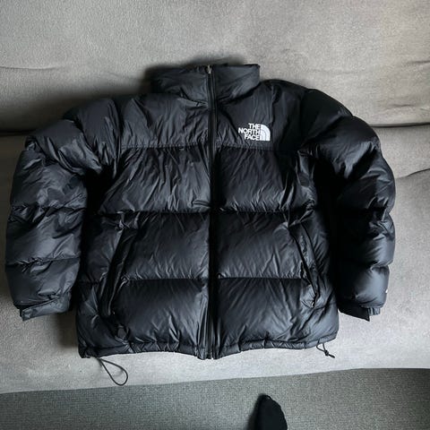 The North Face Vinterjakke i sort farve, størrelse L til herre. Jakken er fremstillet i nylon og er designet til udendørs brug i vinterforhold.