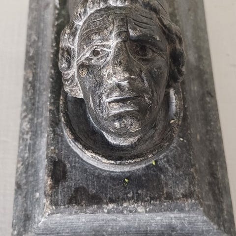 Smuk gammel notesblok holder. Kan bruge en polering. Skjold uden initialer