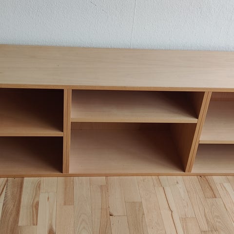 Flot reol kan blive din. Vægreol i træsorten rød Østen. Er bygget af håndværker.