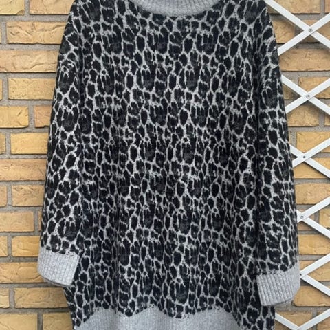 Super lækker blød strik cardigan med grå/sort leo mønster fra Wasabi med krave og snydebrystlommer.
