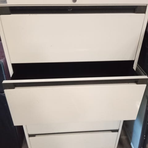 Brugt som opbevaringskommode på kontor, indeholder 7 hængemapper. Skufferne glider fint.