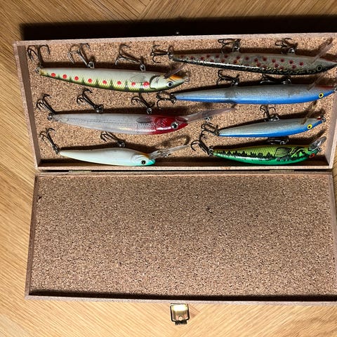 7 stk. blandet endegrej - forskellige wobblere, spinnere og blink. Der er noget Rapala, Mepps og blandet andet.