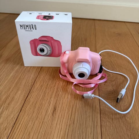 VTech Kidizoom digitalt kamera til børn i blå farve. Kameraet har et brugervenligt design med store knapper, der passer til små hænder. Det indeholder funktioner som fotooptagelse, videooptagelse og forskellige billedredigeringsmuligheder. Sættet inkluderer kamera, brugervejledning, software-CD og hukommelseskort. Velegnet til børn fra 3 år og op.