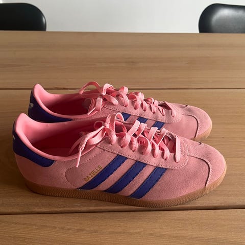 Adidas sneakers i størrelse 42 2/3 Fedtmule Goofy Disney tema sneaker med rød farve og mønster. Skoene har hvide detaljer og er designet til daglig brug.