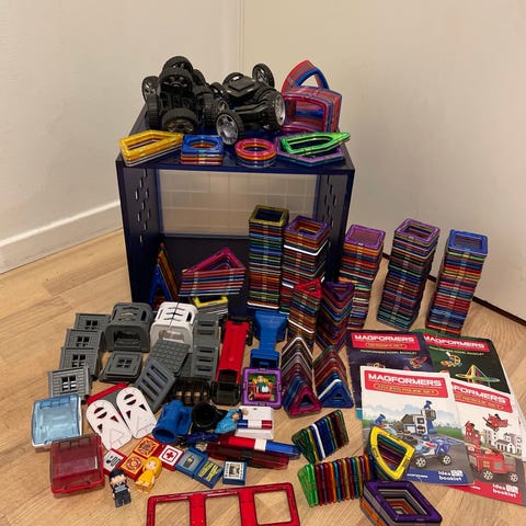 Geomag Magformers børnelegetøj består af farverige magnetiske byggeklodser i forskellige geometriske former, der kan kombineres til at skabe forskellige strukturer og figurer. Sættet indeholder firkanter, trekanter og hjul, hvilket giver mulighed for kreativ leg og læring om magnetisme og konstruktion.