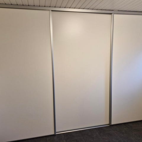 Dejligt nyt garderobeskab med skydelåger og softclose til salg, da vi desværre skal bruge pladsen til nye badeværelser.